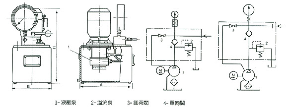 液壓泵站由油箱、泵裝置、液壓集成系統(tǒng)及其它附件組成。 1、油箱:是儲油、散熱、分離油中的空氣及沉定物質(zhì),并支承液壓集成系統(tǒng),動力部件。 它由油箱體,流程隔板、濾綱隔板、板、空氣濾清器、測溫孔、清洗和液面指示器的半封、本廠還在集成油路的總加油管上安裝20μ的精密濾油器,基本上保證了油液的清度,使元件動作可靠,使用壽命的好處。 2、泵裝置、聯(lián)接油泵與電動機,是液壓泵站的動力能源。分: 立式裝置---用于定量(單泵與雙聯(lián)泵)菜片泵。 臥式裝置--用于定量(單泵與雙泵)菜片泵,齒輸泵和柱塞泵。 旁裝置式裝置--用于幾量和柱塞泵、 3、液壓集成系統(tǒng):采用標(biāo)準(zhǔn)化的液壓元件 ,按典型動作組成 |